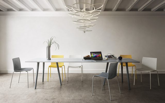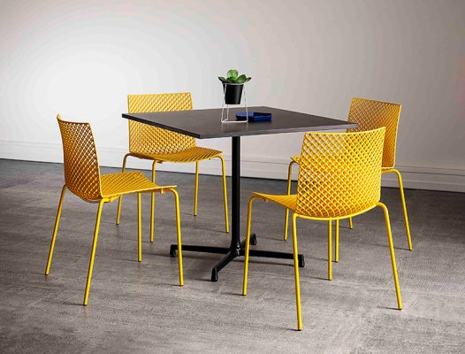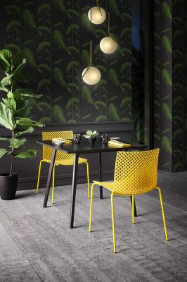 Pés metálicos pintados.