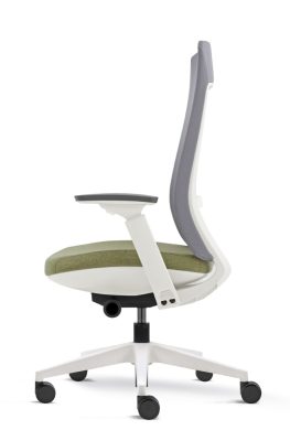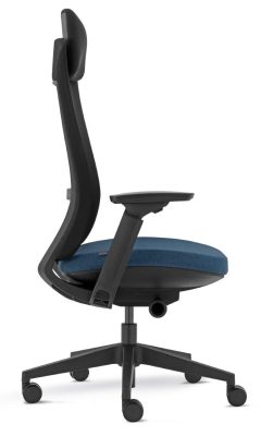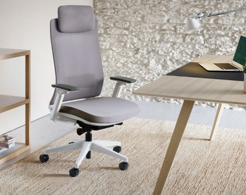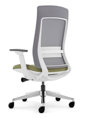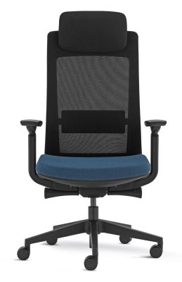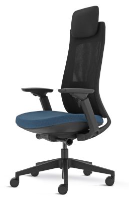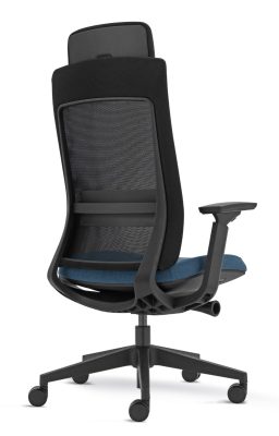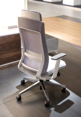 Costa alta em rede cinza ou preta com suporte de lombar, opção encosto de cabeça