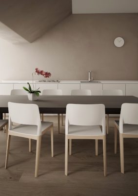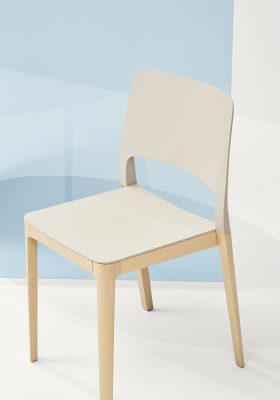 Assento e costa em polipropileno ou poliuretano.
