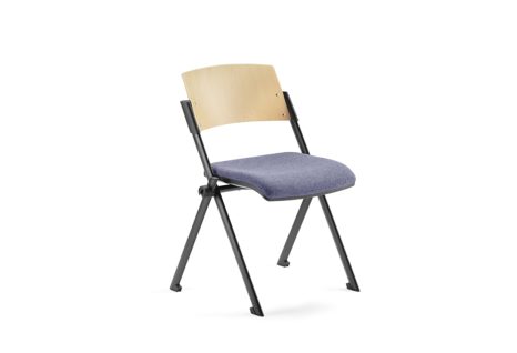 Assento em espuma flexível revestida a tecido ou pele sintética.