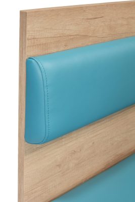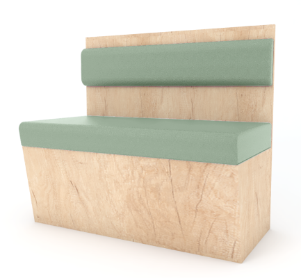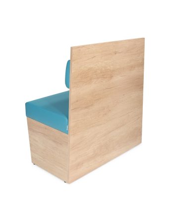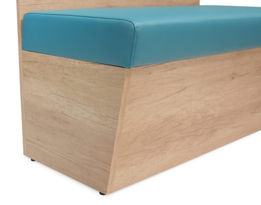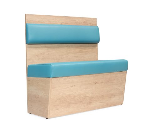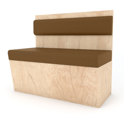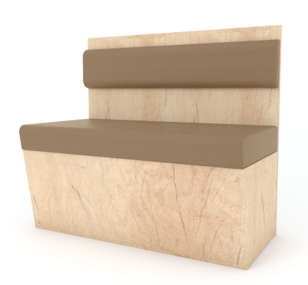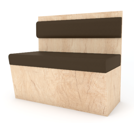 Estrutura em madeira. Encosto e assento em espuma revestida a pele sintética ou tecido.